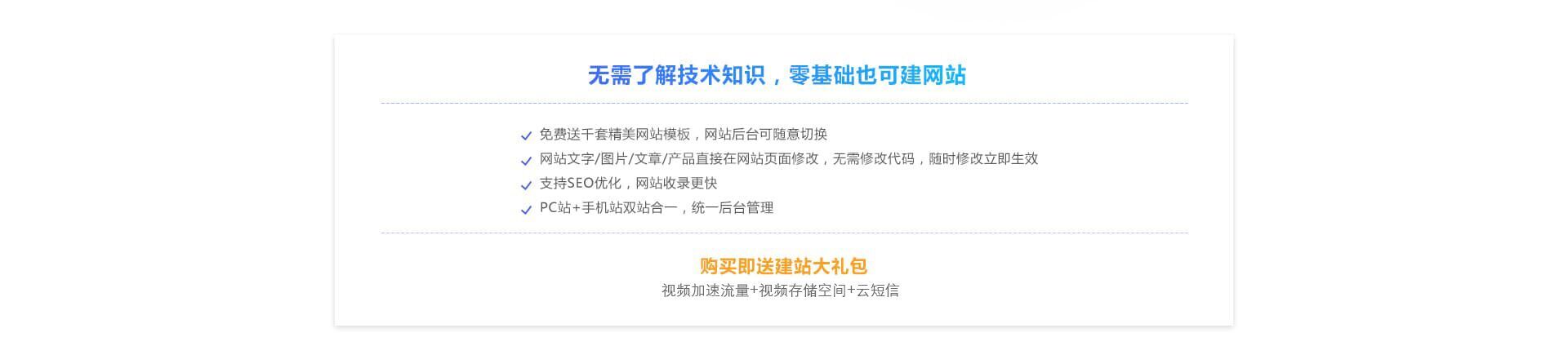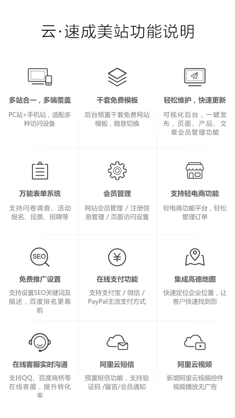 支持云視頻控件,視頻播放無廣告,預置短信功能,支持網站會員手機號驗證/付款發貨/留言評價等短信通知功能