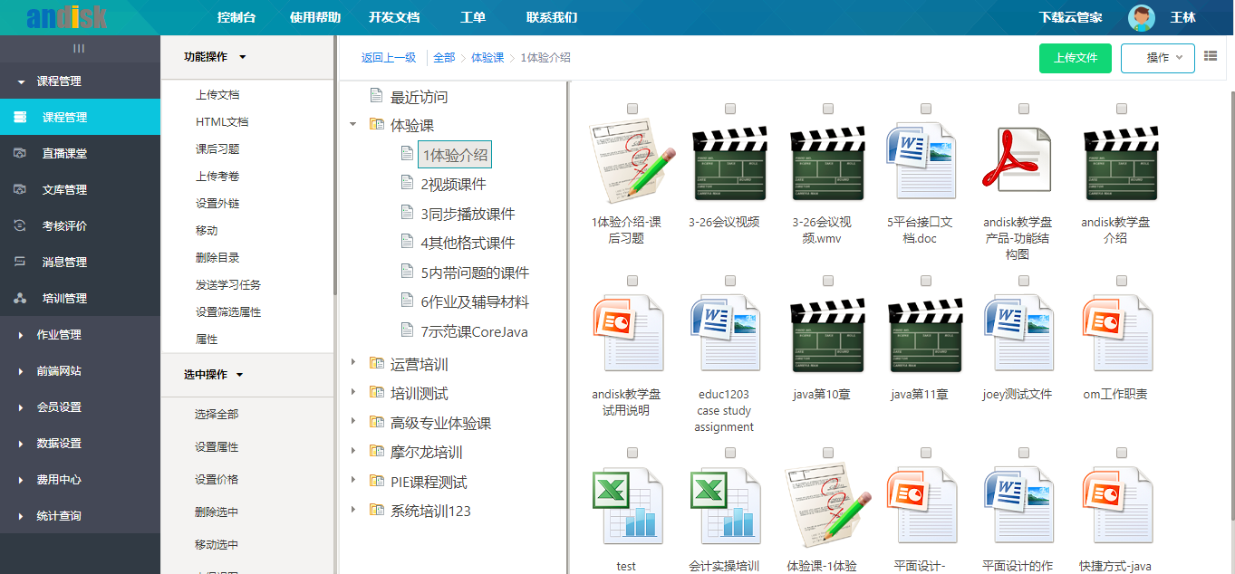 支持各種格式 。像資源管理器一樣,可以拖拽上傳,也可以批量上傳。鼠標(biāo)右鍵各種操作,設(shè)置章節(jié),大綱,增刪改。上傳的課件不用重復(fù)上傳,創(chuàng)建快捷方式到各個(gè)課程里,又可以組合出一套課程,適合各種場(chǎng)景,靈活方便。一致的操作,極大的降低了溝通成本。